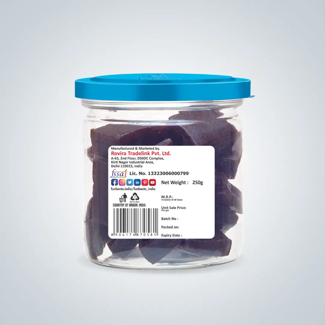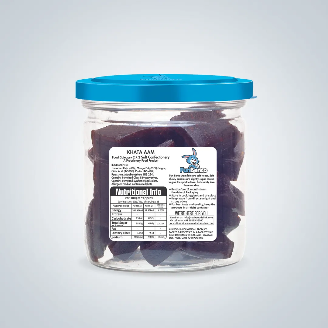 Introducing funbento Katha Aam, a delectable treat that combines the tangy and spicy essence of mango with traditional Indian flavors. Each jar contains 250 grams of these chatpata candies, with each piece weighing approximately 4 to 5 grams. This delightful candy offers a burst of robust flavors that not only tantalize your taste buds but also promote digestive health.
